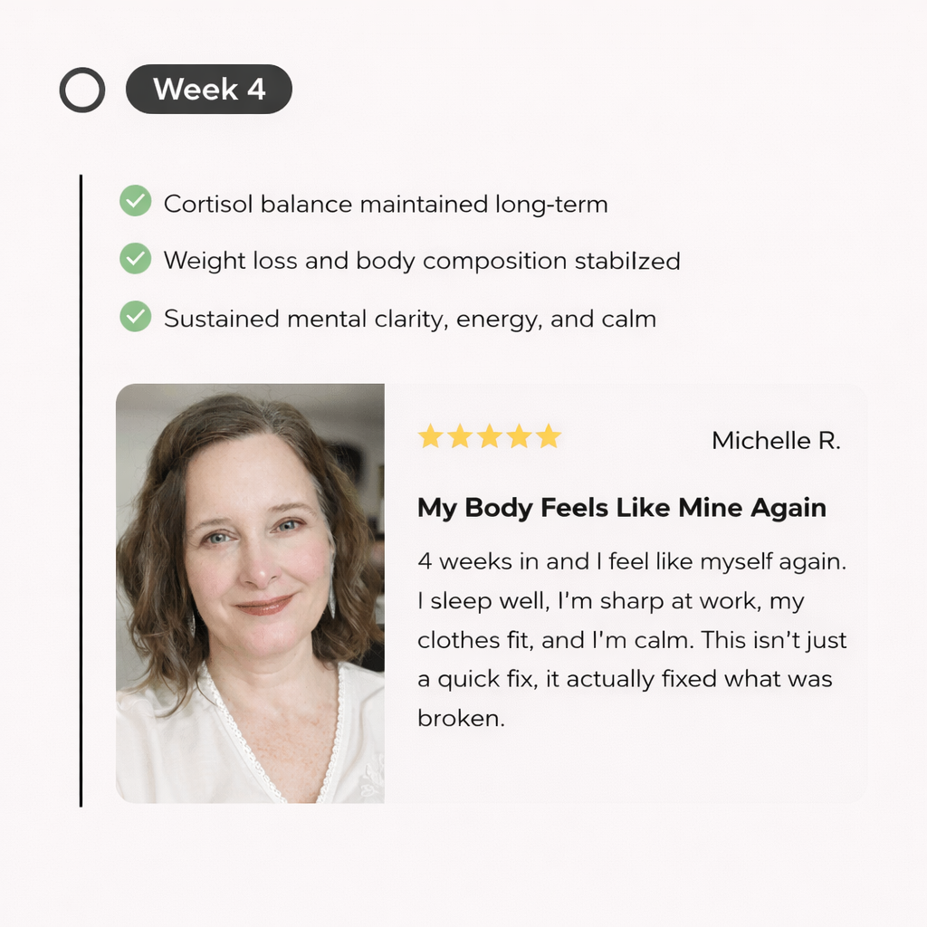 When cortisol (your stress hormone) stays high, your body is stuck in survival mode. You can't sleep deeply, your metabolism slows down, and your brain gets foggy.
